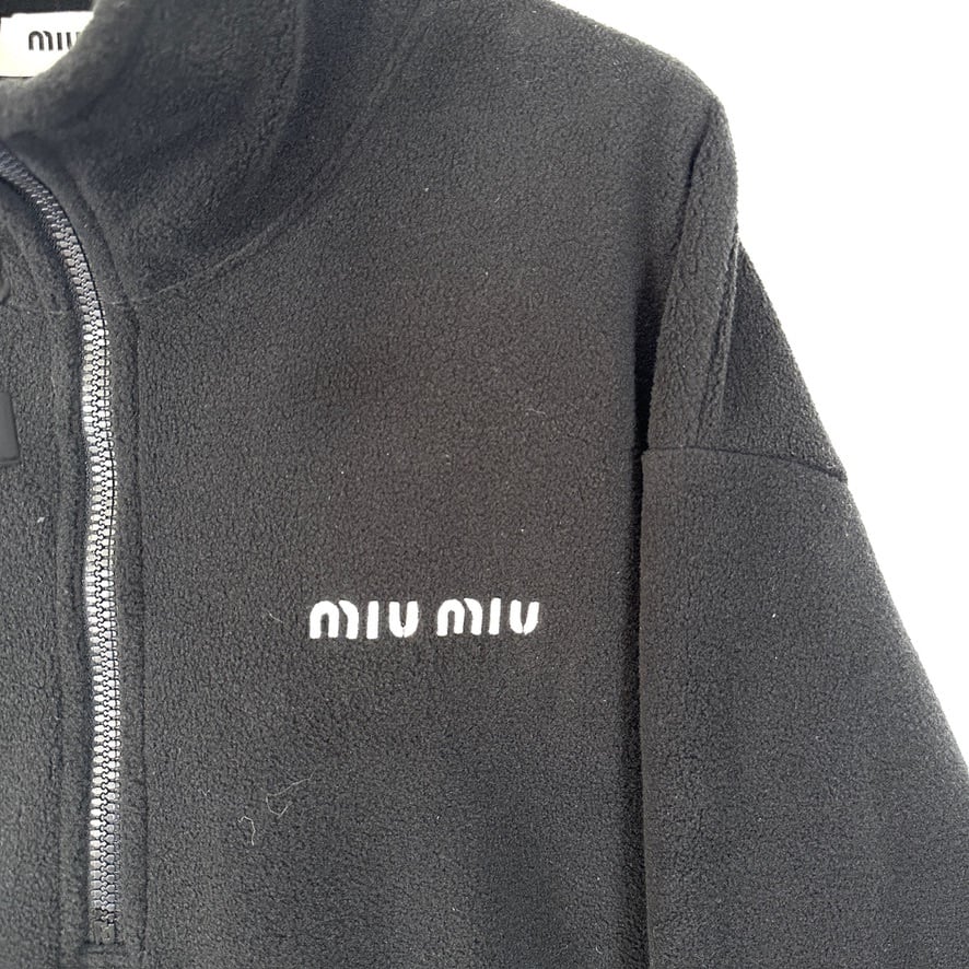 Rare◇MIU MIU 24AW Logo Half Zip Fleece Sweatshirt Trainer Black XS Men's Women's Unisex