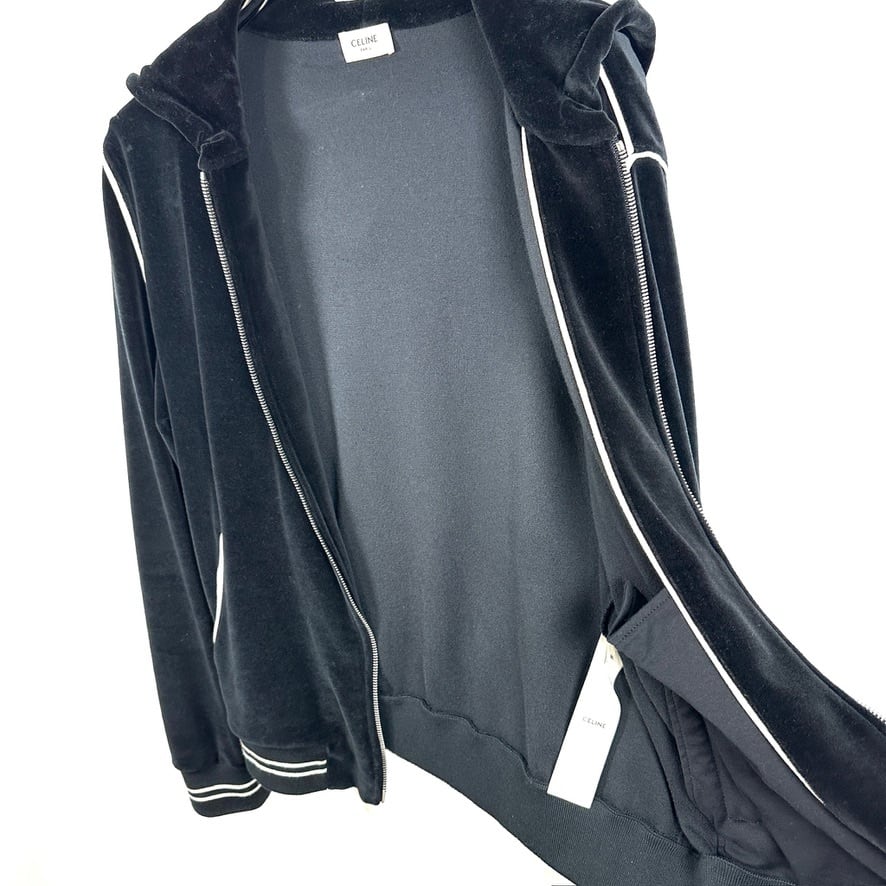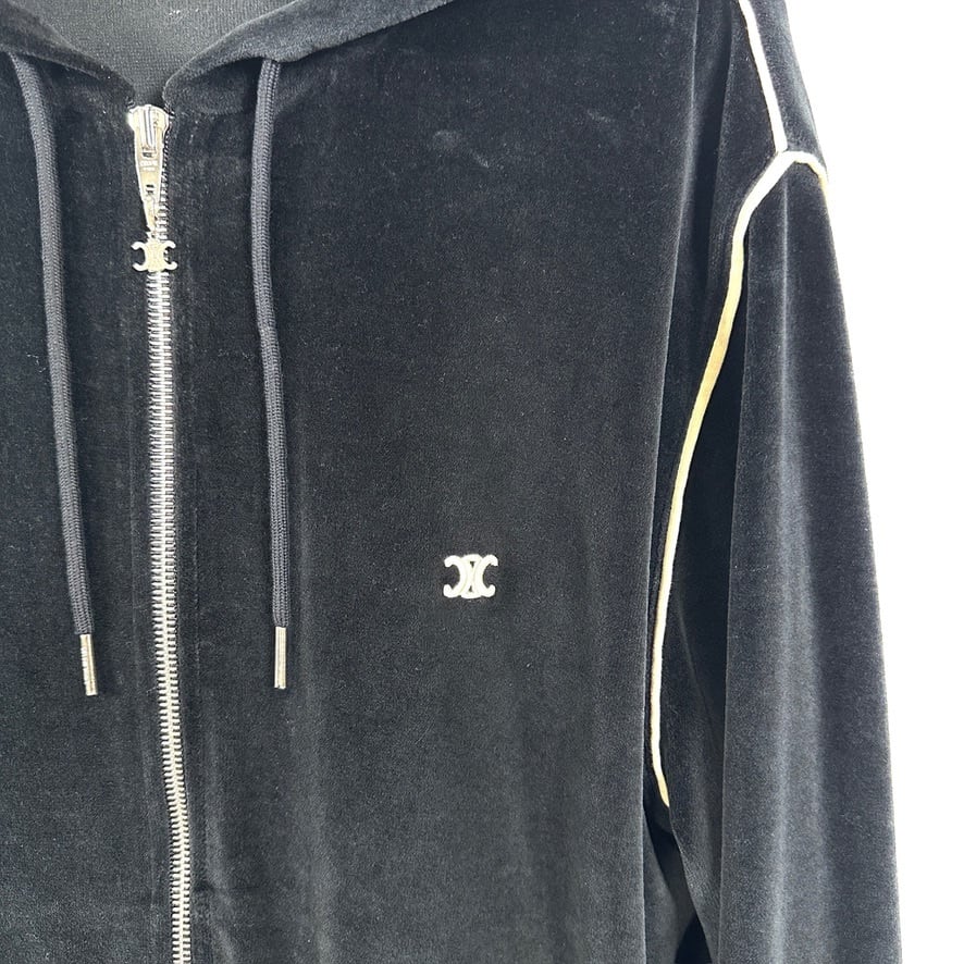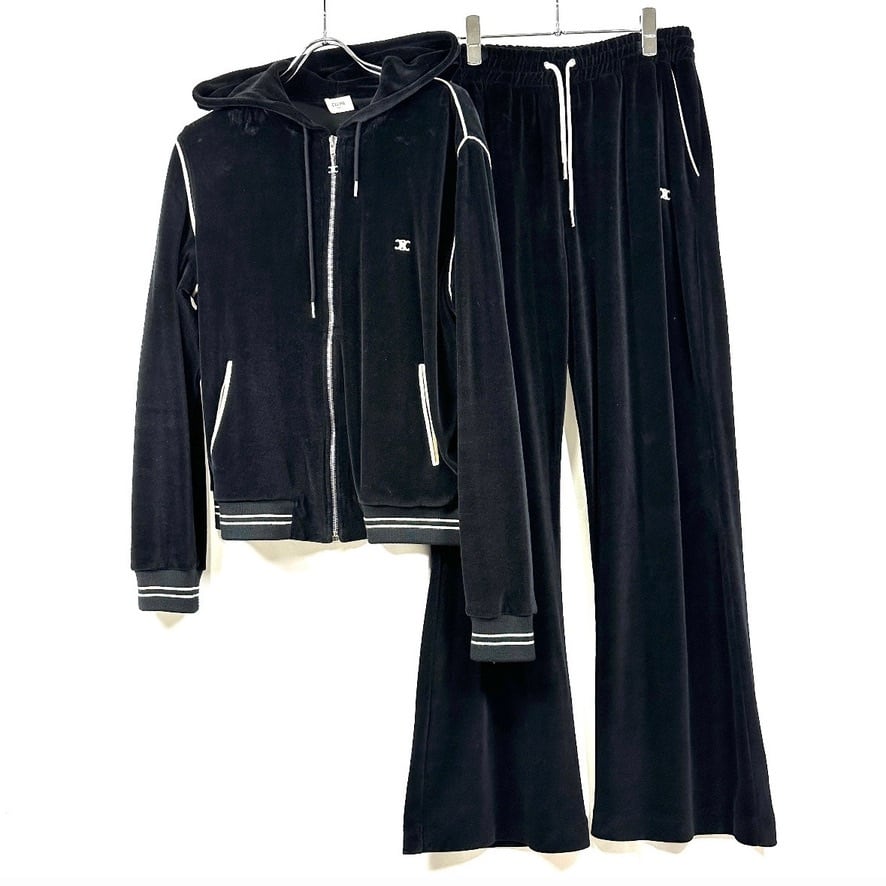 Ultra Rare ◇ CELINE Velour Set-Up Tracksuit Jacket Pants Jersey Edie Era Men's Black