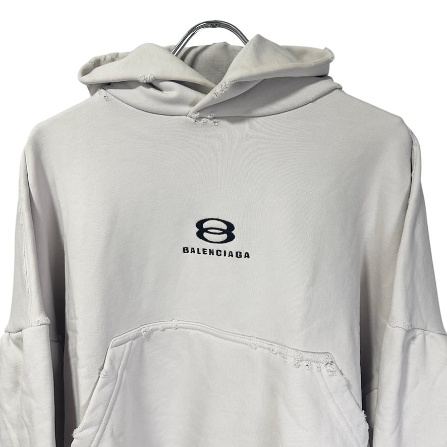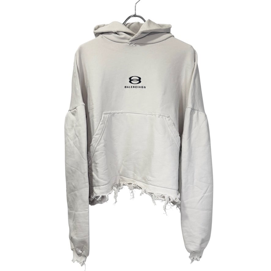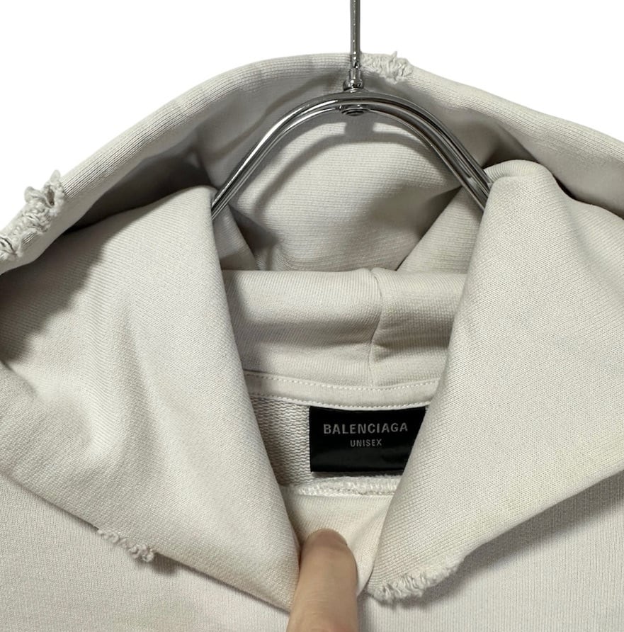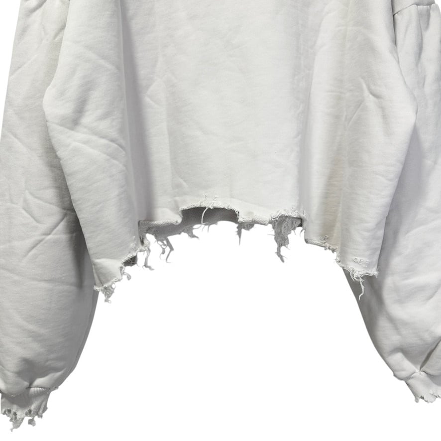 Excellent Condition◇BALENCIAGA Unity Sports Icon Cropped Hoodie with Distressed Finish in White 1 Unisex