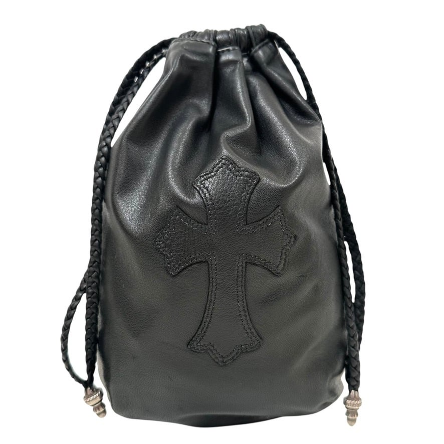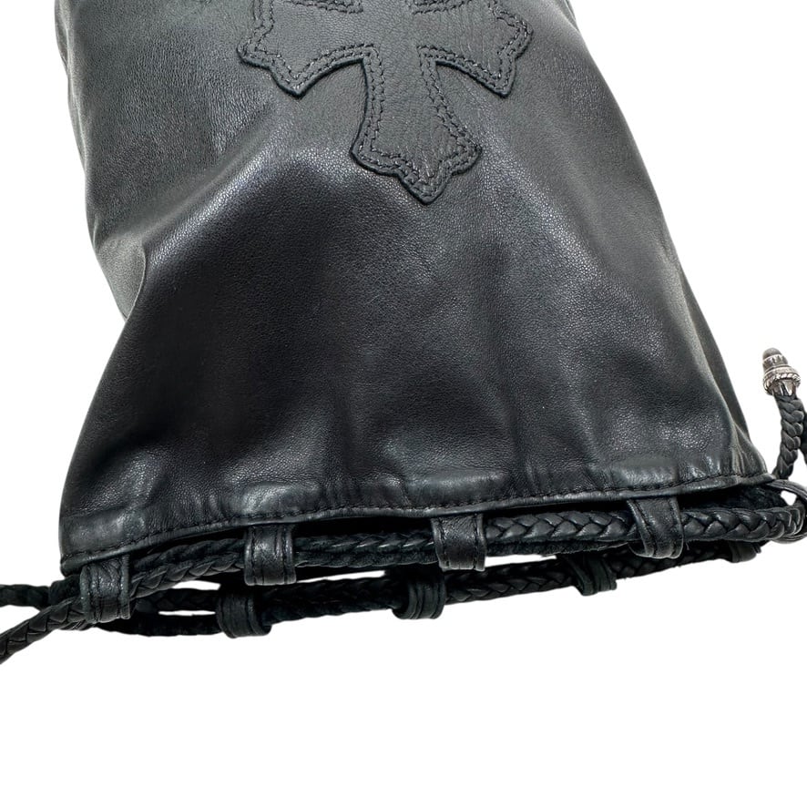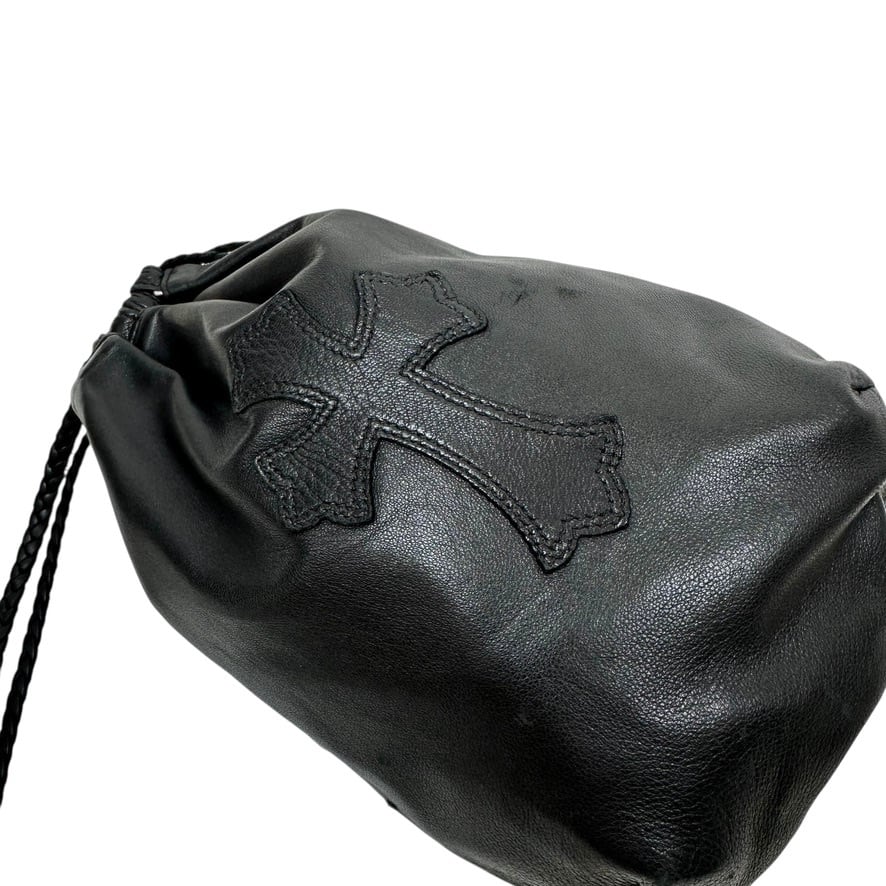 Ultra Rare◇Chrome Hearts DRW STRNG SACK CRS PATCH Cross Patch Drawstring Sack Leather Drawstring Handbag