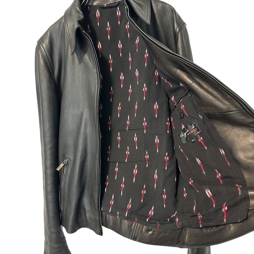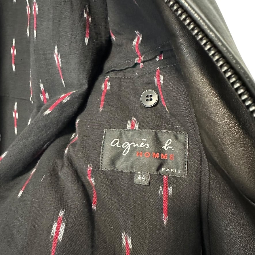 Ultra Rare◇Agnes.b HOMME Lamb Leather Jacket Single Men's Size 44 Black Unisex
