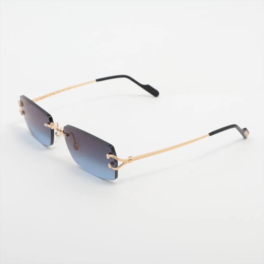 High-End ◇ Cartier Rimless Double-Point Glasses/Sunglasses C-Motif Genuine Lenses Blue Goyard Unisex