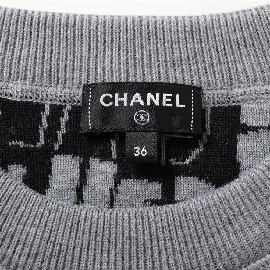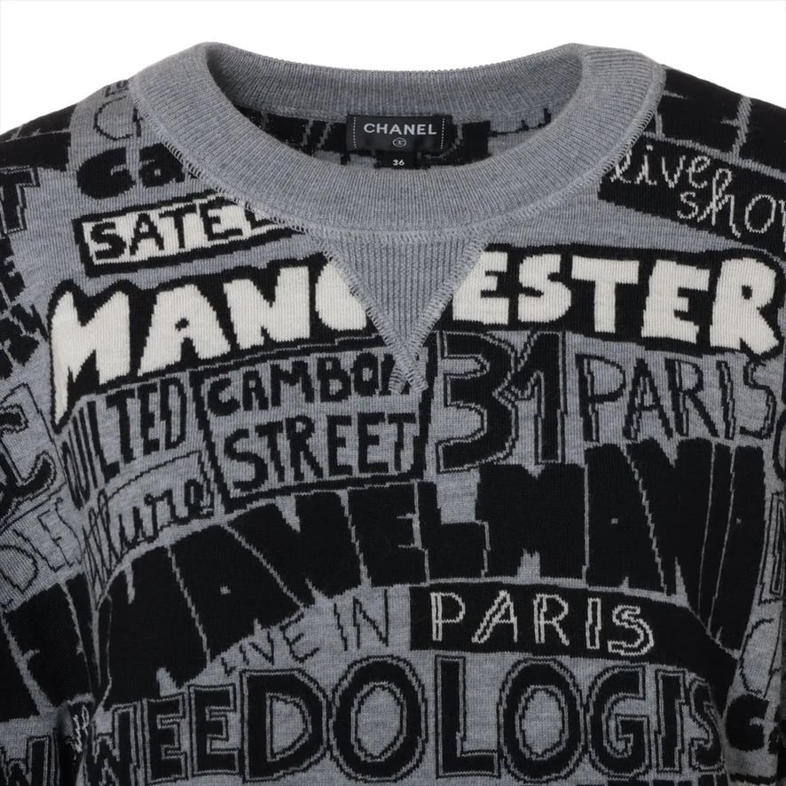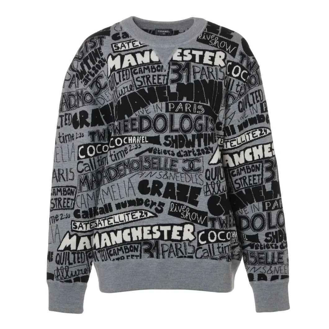 Ultra Rare◇CHANEL 24AW Métiers d'Art Collection Coco Mark Graffiti Crewneck Knit 36 Gray Unisex