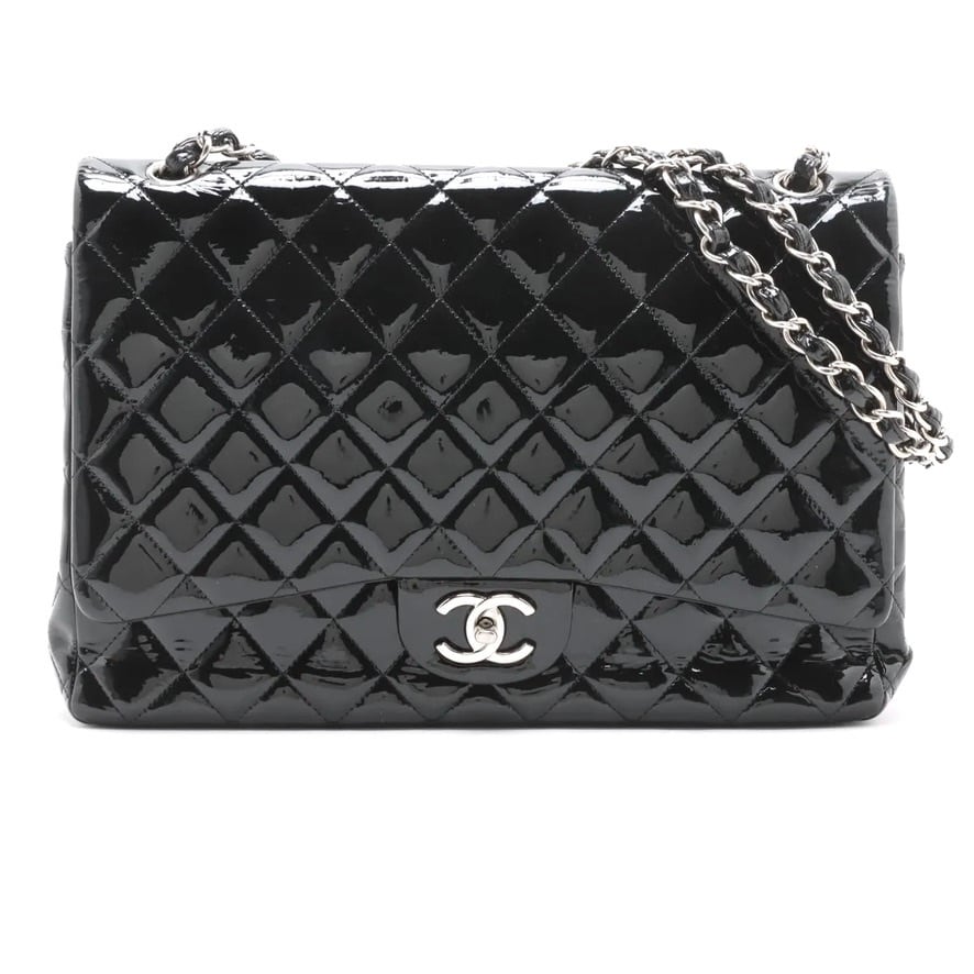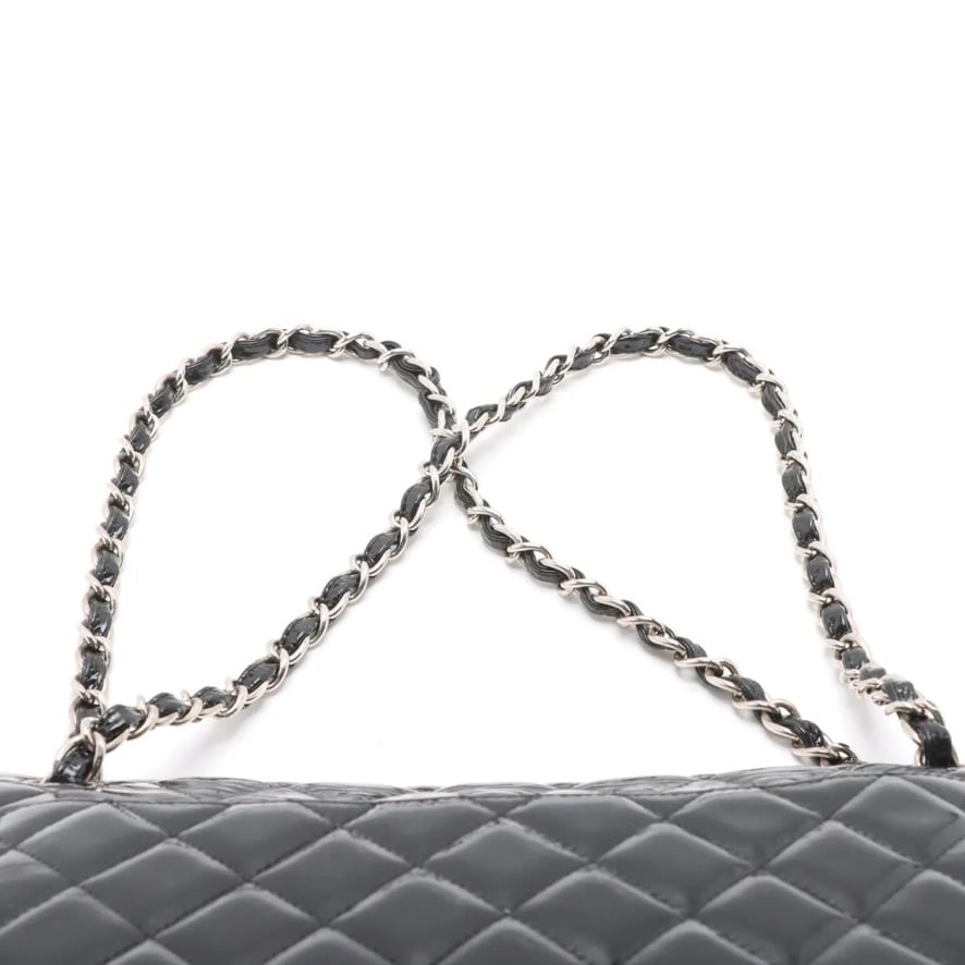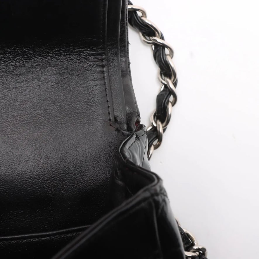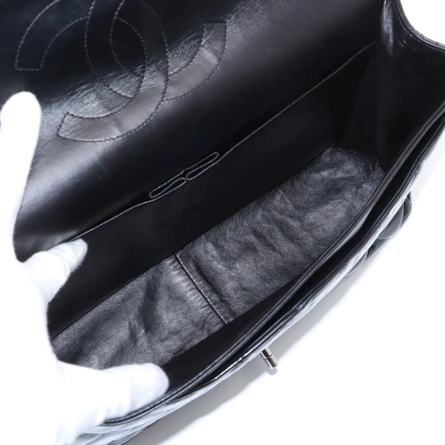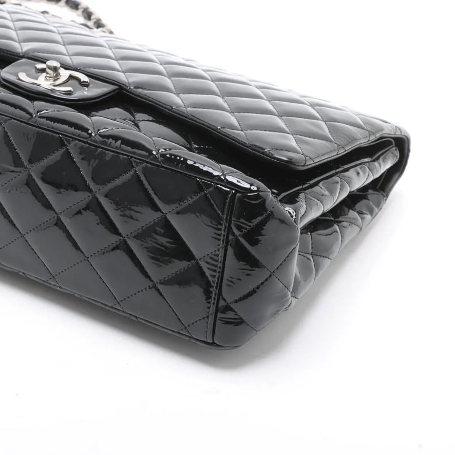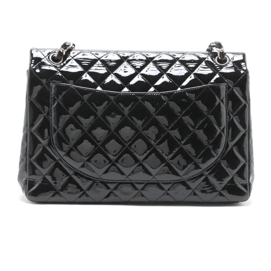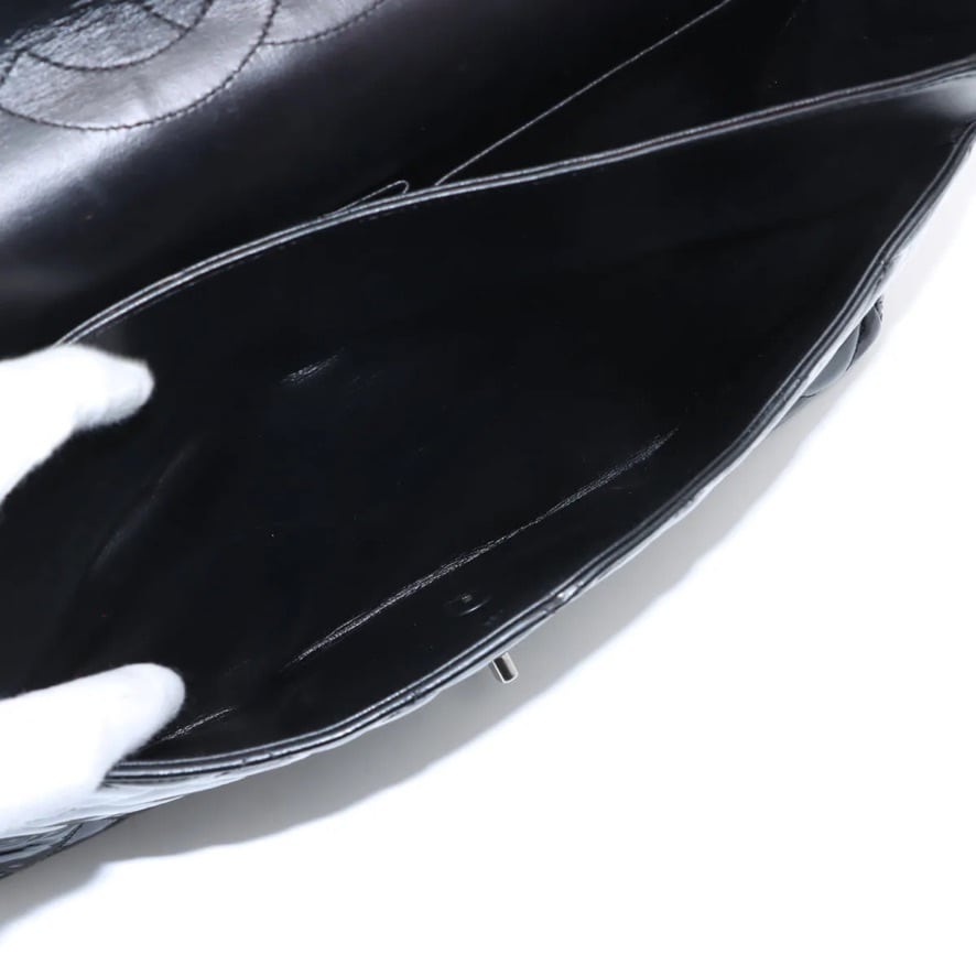 Ultra Rare◇CHANEL Decamatrassé 34 Large Double Flap Double Chain Bag Patent Leather Black Men's Women's