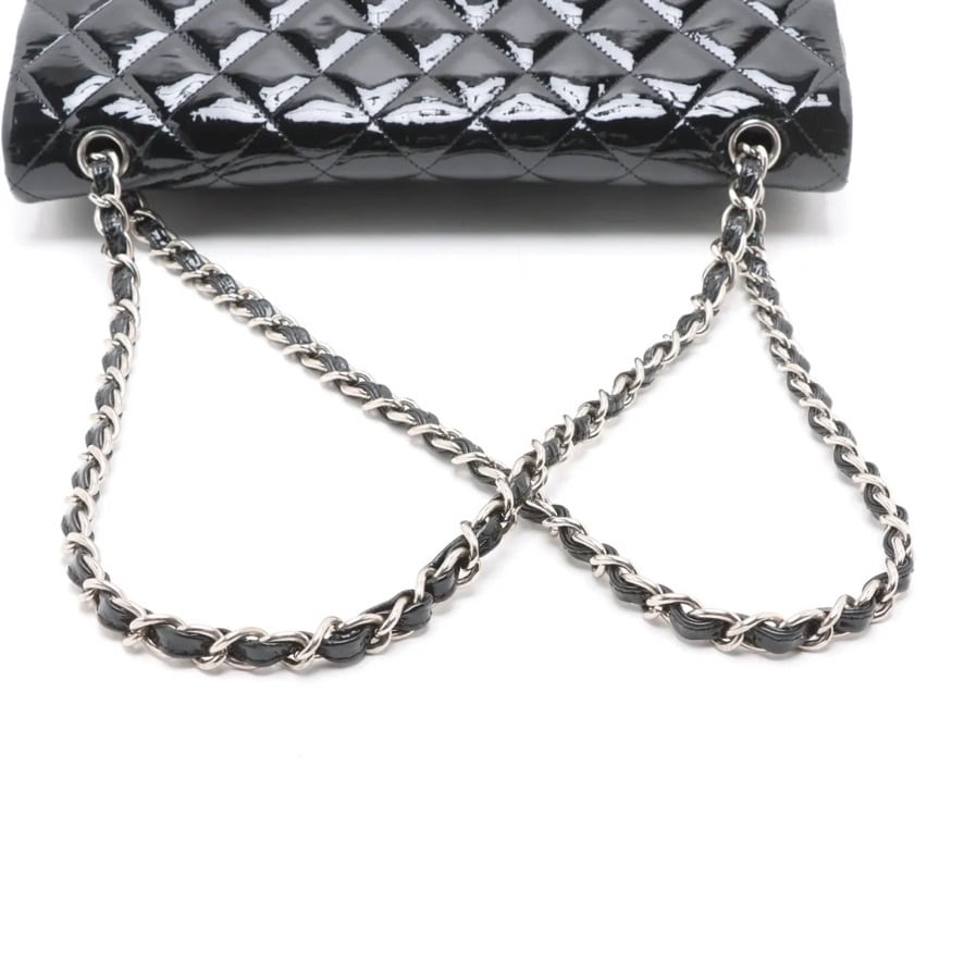 デカマトラッセ34 ラージ ダブルフラップ ダブルチェーンバッグ パテントレザー