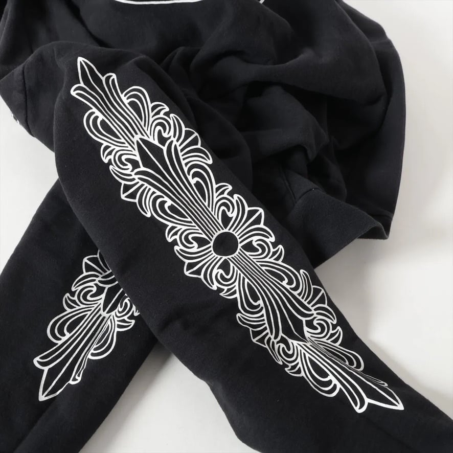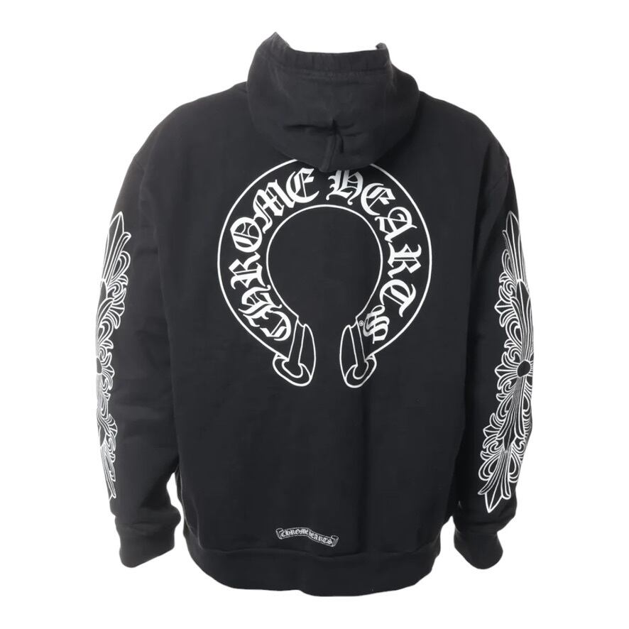 Rare◇Chrome Hearts Horseshoe SWTSHRT PLVR Hoodie Floral Sleeve Back Horseshoe Print