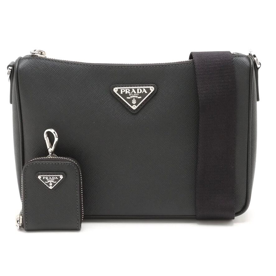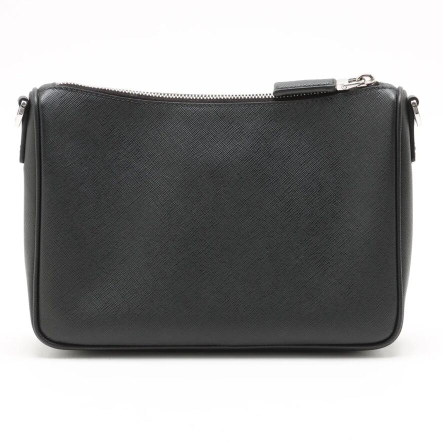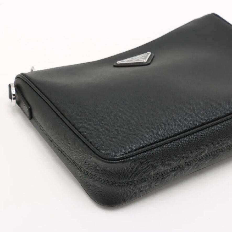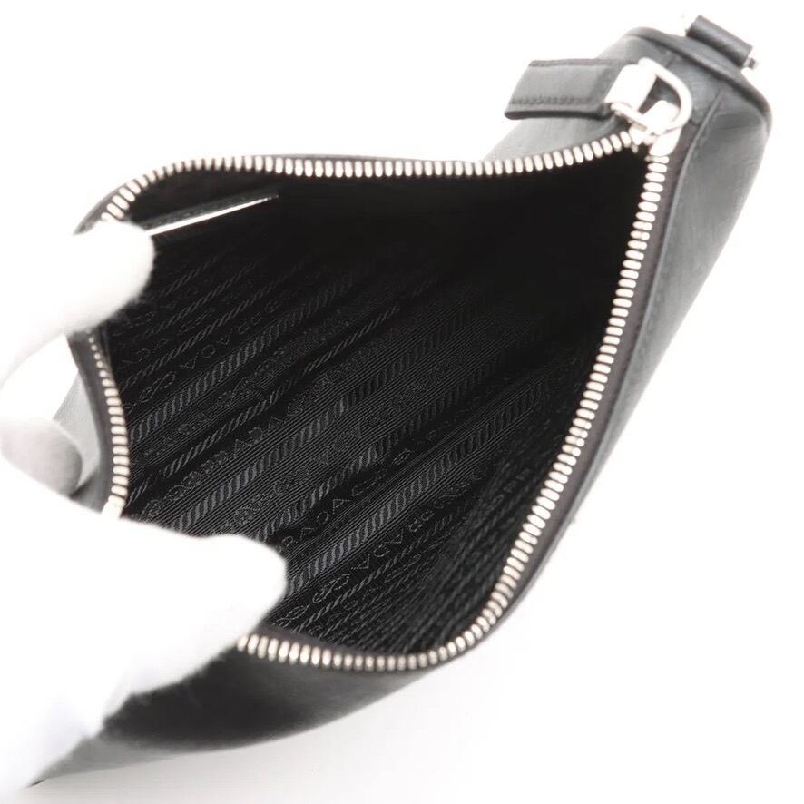 Mint Condition◇PRADA Saffiano Travel Leather Shoulder Bag Pouch Black Silver Men's Women's Unisex