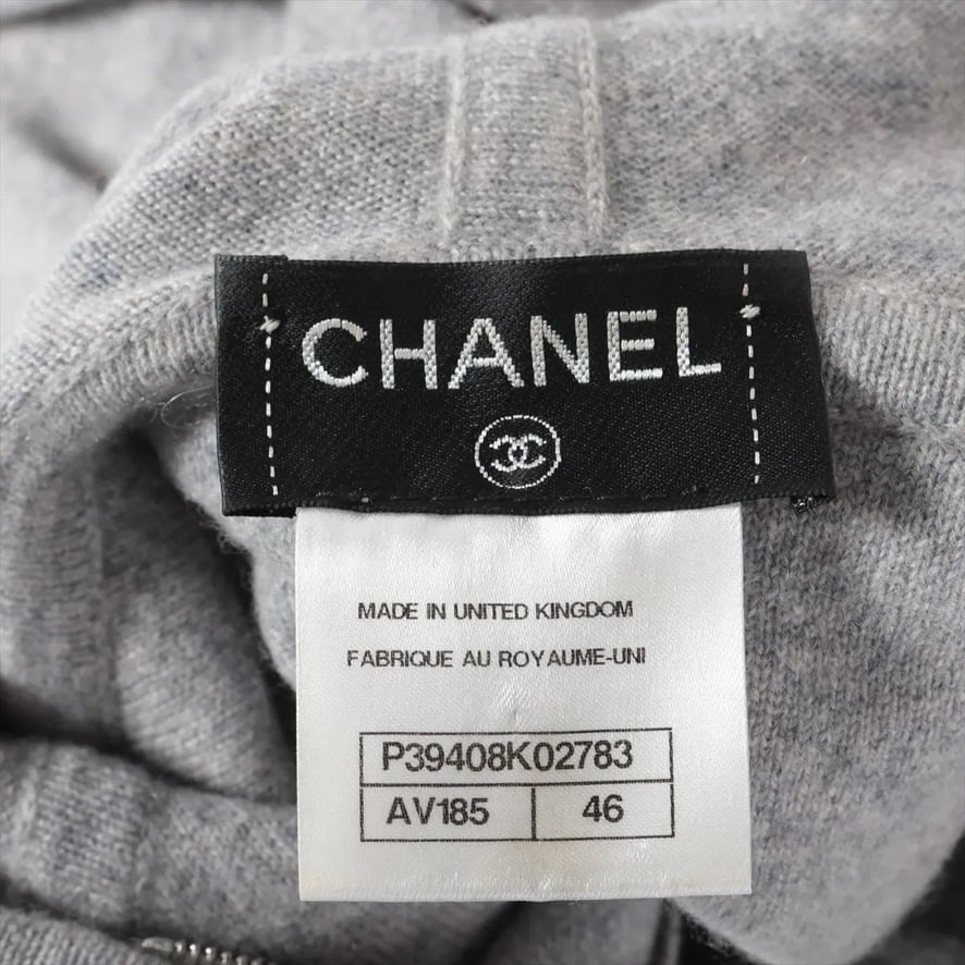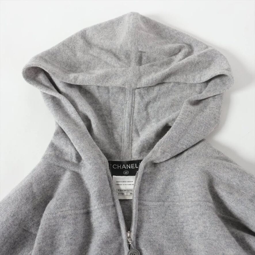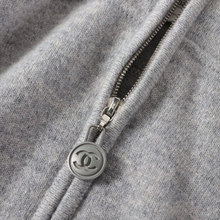 Ultra Rare◇CHANEL Cashmere Coco Mark Hoodie Knit Zip-Up Hooded Jacket Gray Size 46 P39408K02783