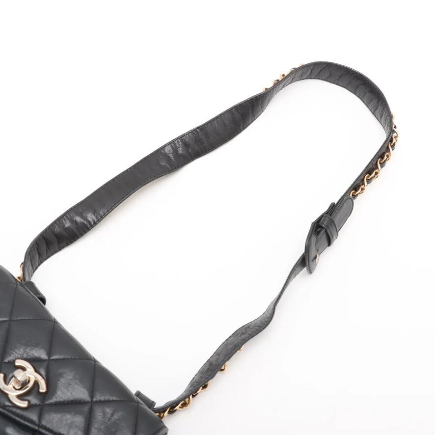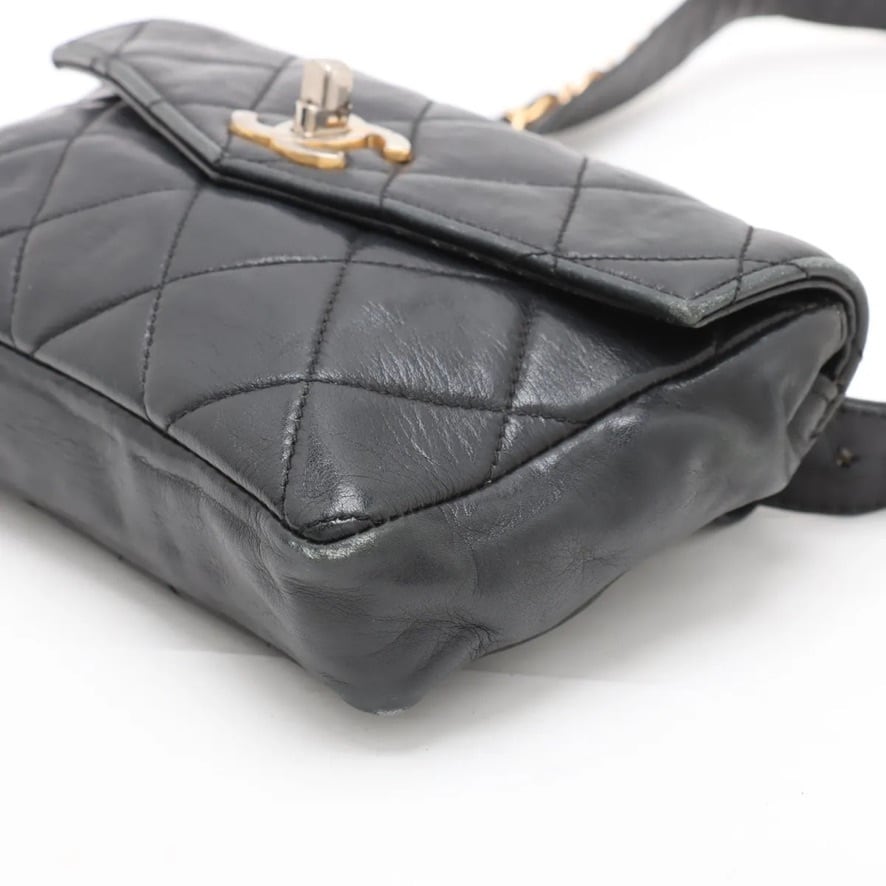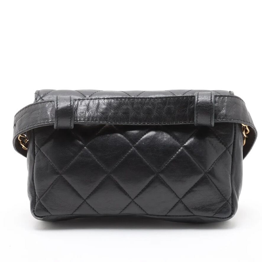 Ultra Rare◇CHANEL Matelassé Lambskin Waist Bag Body Bag Shoulder Bag Black Gold Unisex