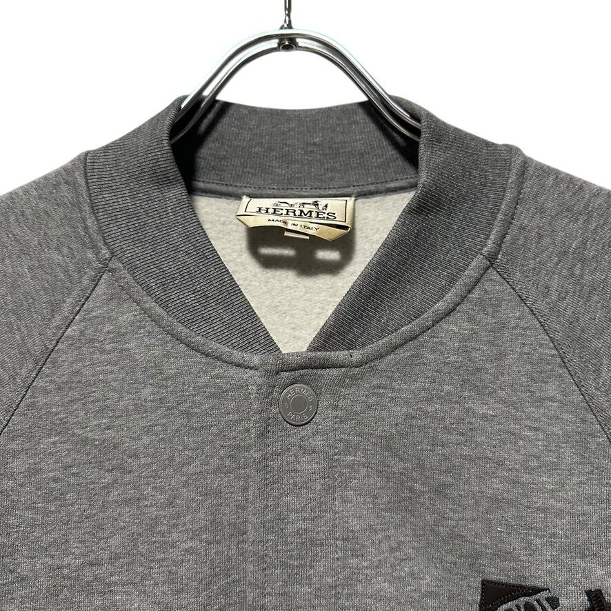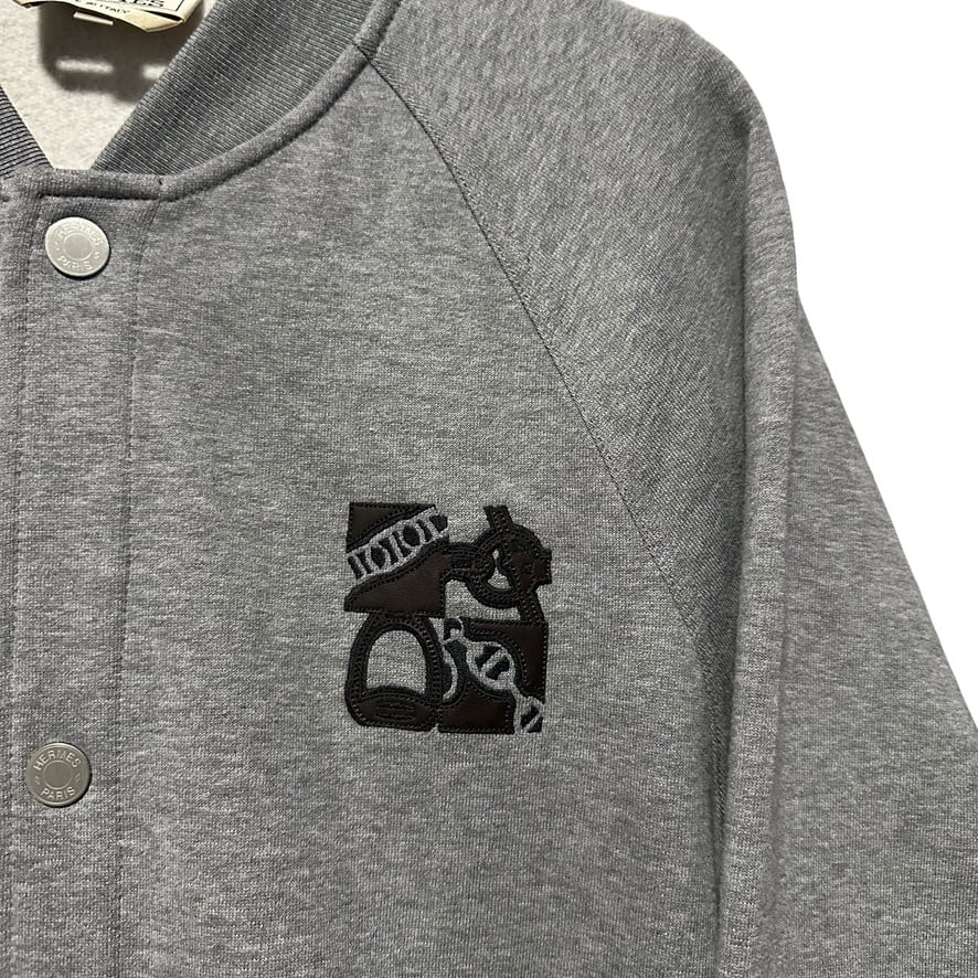 Extremely Rare ◇ HERMES 24SS Sweatshirt Jacket, Bomber Jacket, Series Button, Jeu d'Adress, Lambskin Leather Patch, L, Men's