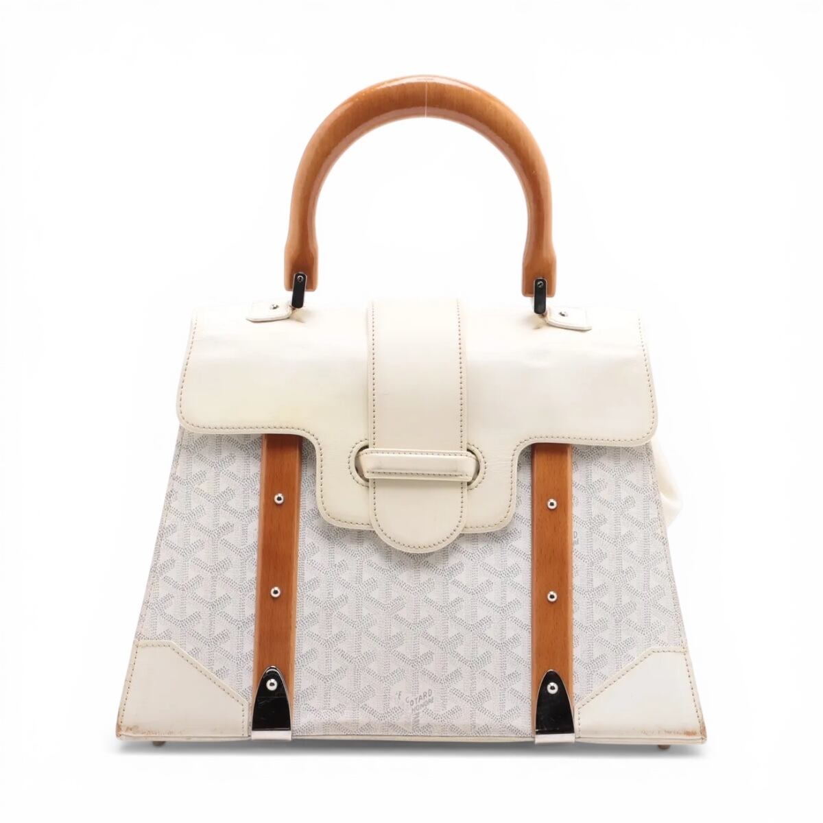 ◆ブランド ゴヤール ◆商品名 サイゴンGM ハンドバッグ ◆カラー ホワイト ◆素材 ディンキャンバス ◆サイズ W : 35.5cm H : 25cm D : 16cm ◆付属品 - ◆状態 小さなキズシミ汚れ変色ひび割れ剥がれあり、大きく目立った傷や汚れなくまだまだお使いいただけます。