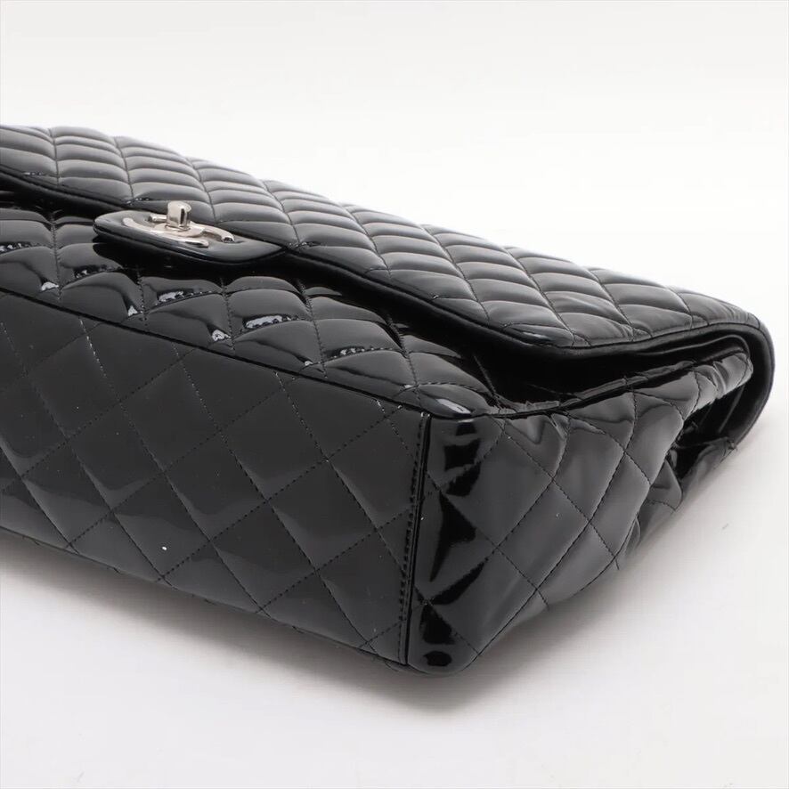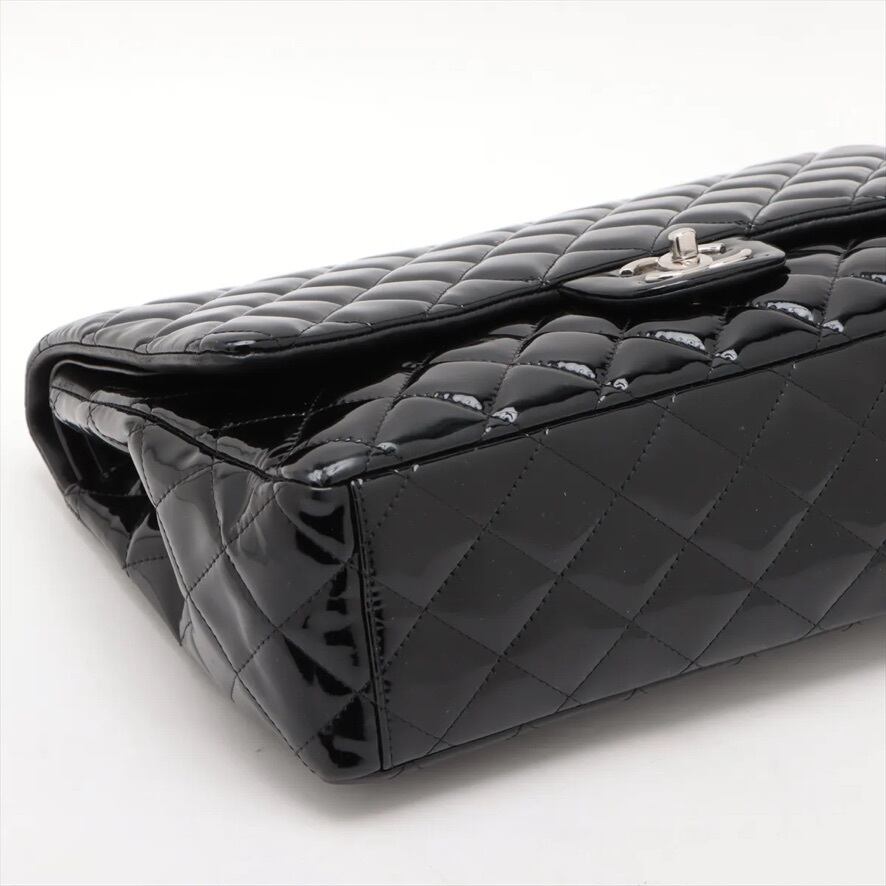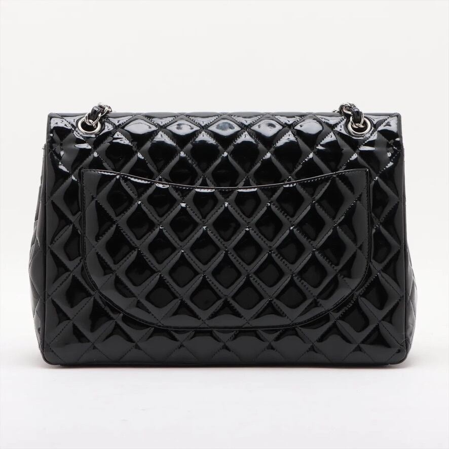 Extremely Rare ◇ CHANEL Deca Matelassé 34 Maxi Patent Leather Double-Flap Double-Chain Shoulder Bag - Black