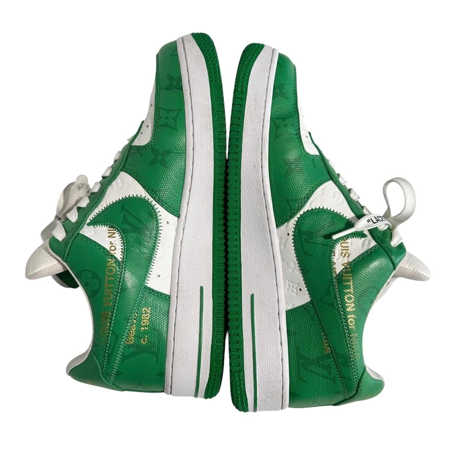 ◆ブランド ルイヴィトン × ナイキ ◆商品名 AIR FORCE1LOW by Virgil Abloh ナイキ エアフォース 1 ローカットシューズ スニーカー モノグラム ◆カラー ホワイト , グリーン ◆年代 2022年 ◆サイズ 7 ◆付属品 箱 , 保存袋など ◆状態 小さな汚れ破れあり、大きく目立った傷や汚れなくまだまだお使いいただけます。