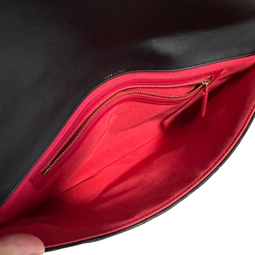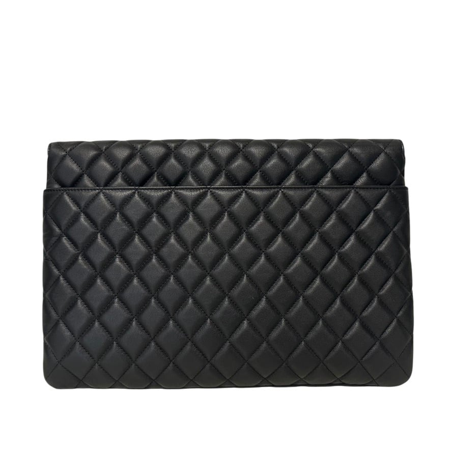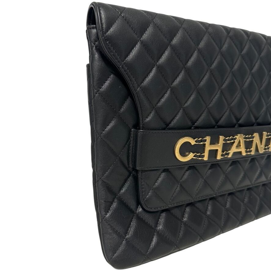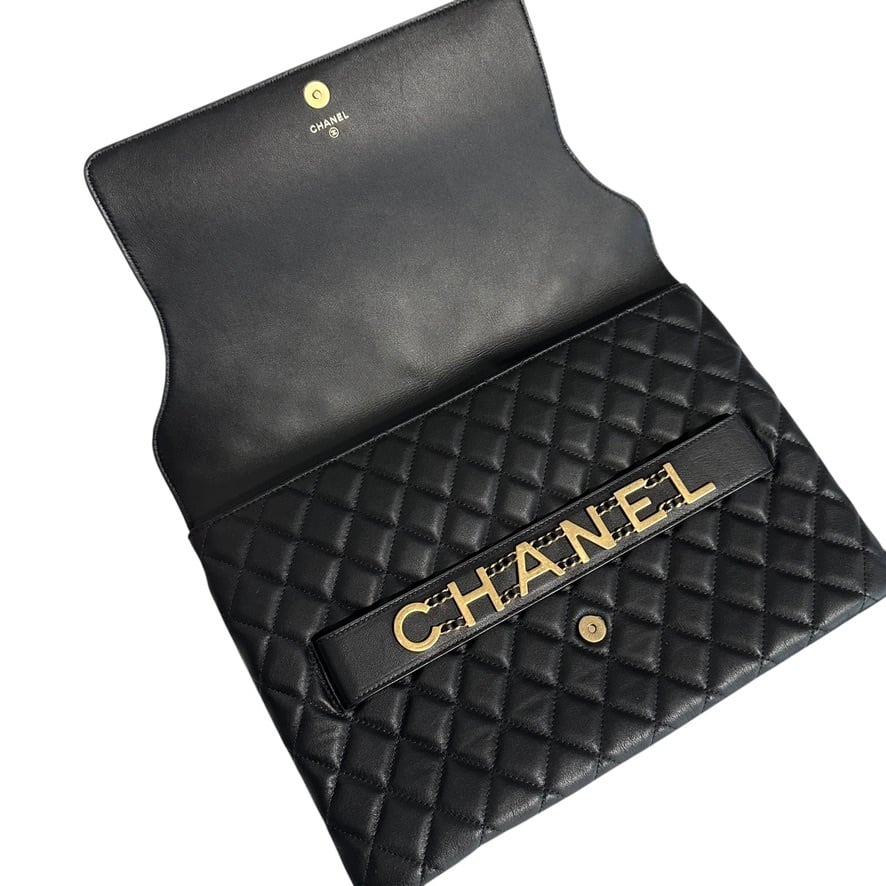 Extremely Rare ◇ CHANEL Matelassé Maxi Calfskin Quilted Clutch Bag with Front Logo and Chain Strap 29812524