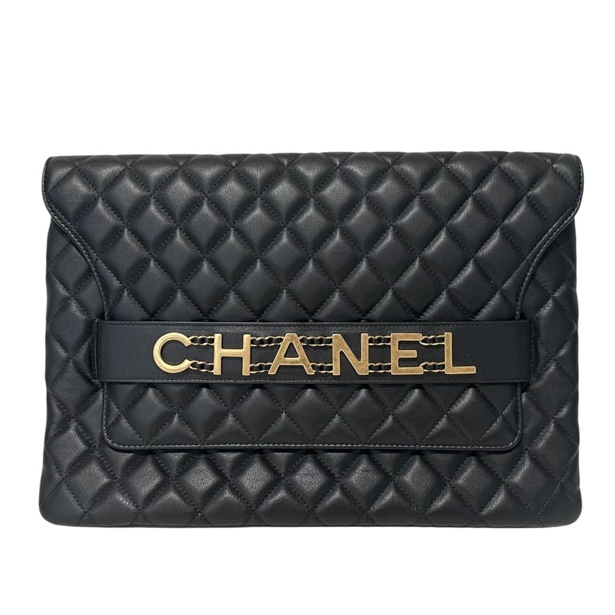 マトラッセ マキシ カーフスキン キルティング フロントロゴ エンチェーン クラッチバッグ