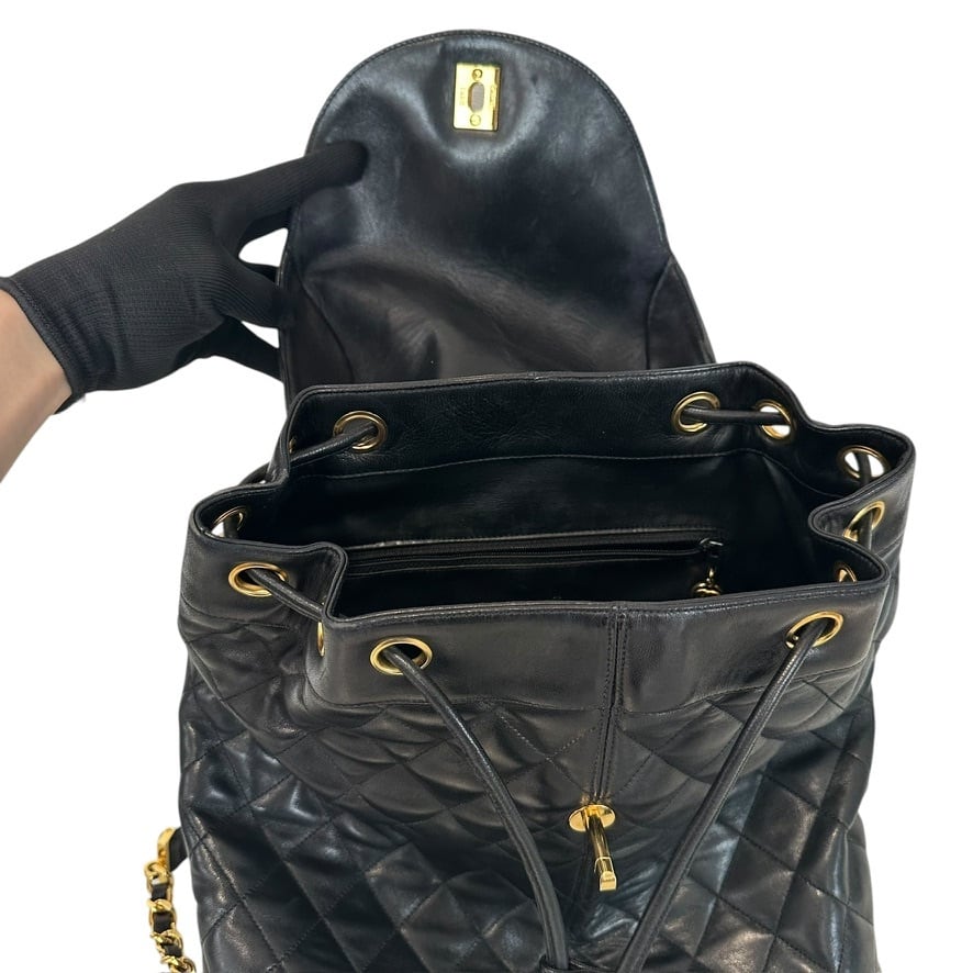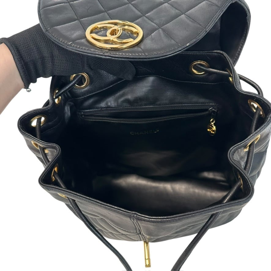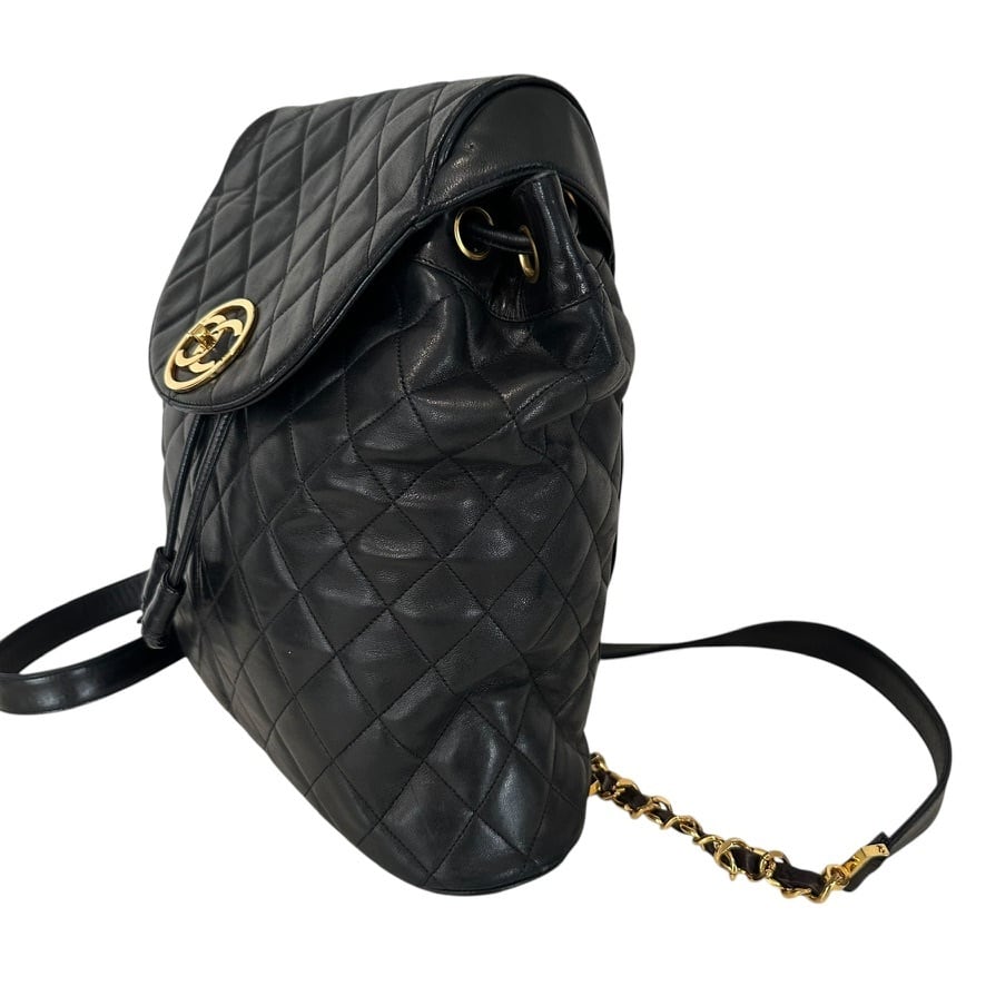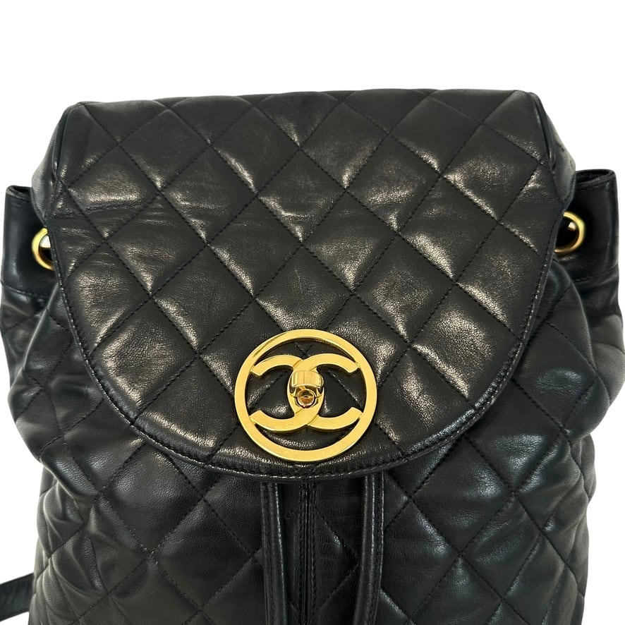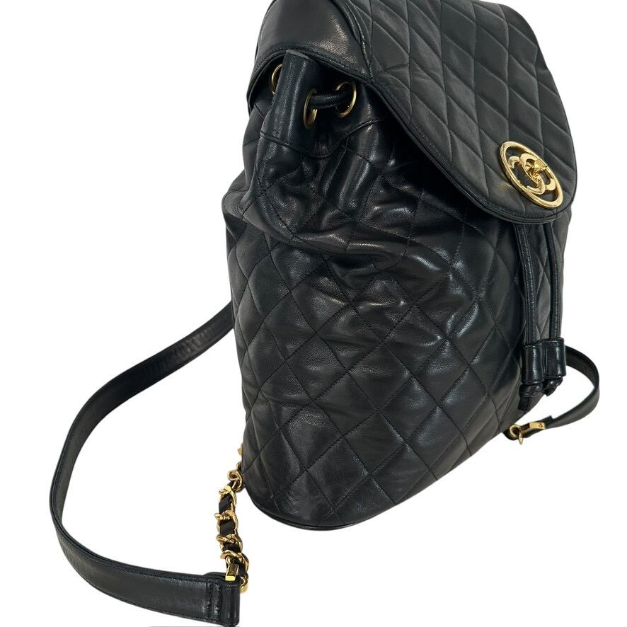Rare ◇ CHANEL Circle Coco Matelassé Lambskin Chain Bag Backpack Black & Gold 2542796