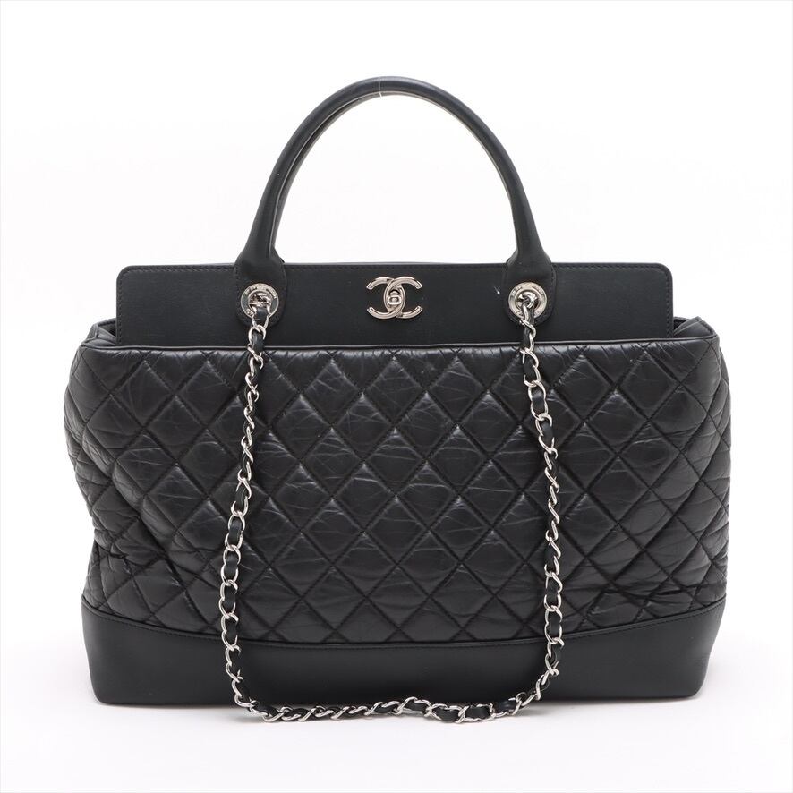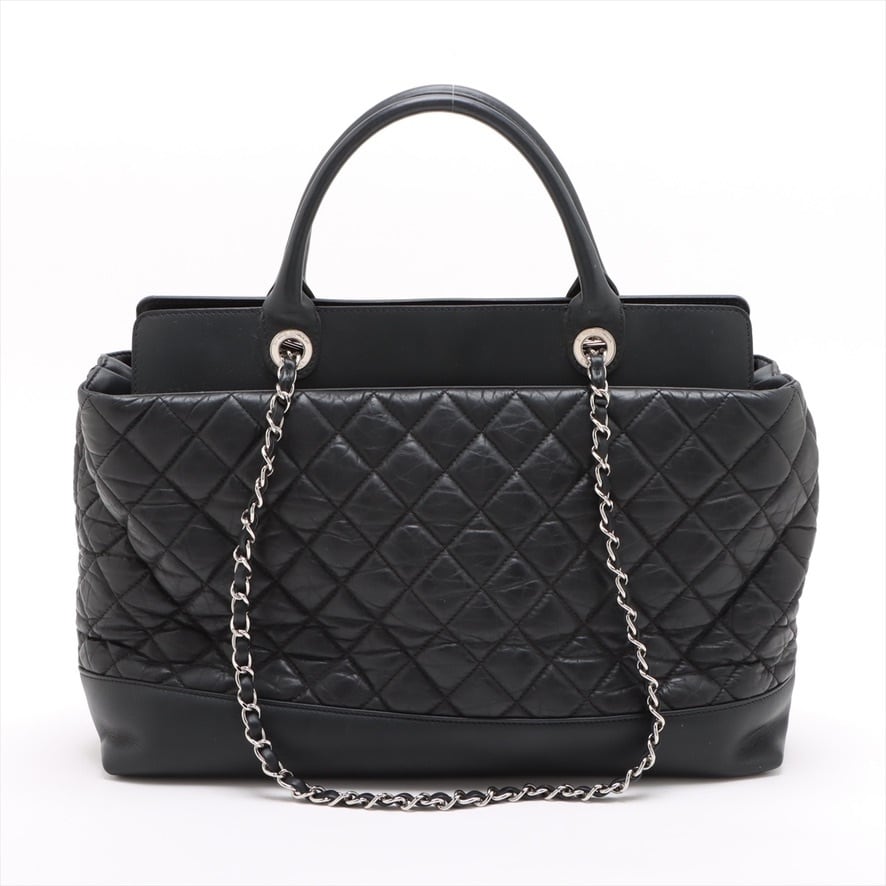 Extremely Rare ◇ CHANEL Portobello Vintage Calfskin 2-Way Handbag/Shoulder Bag - Black & Silver - 15754321