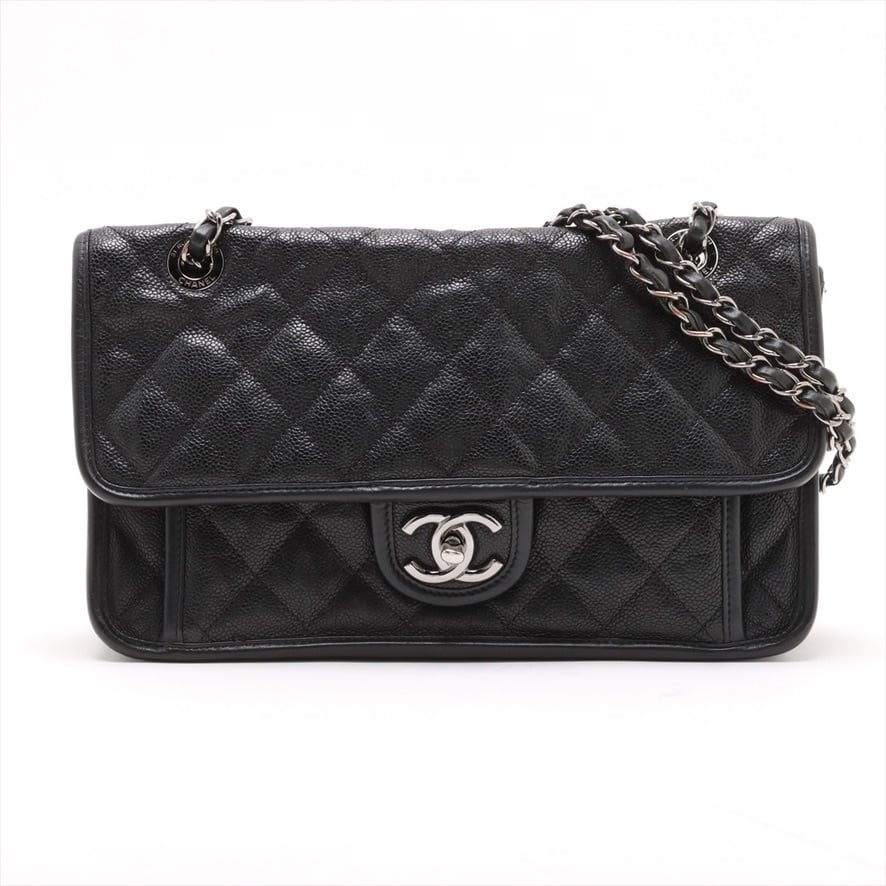 フレンチリビエラ キャビアスキン シングルフラップ ダブルチェーンバッグ ココマーク